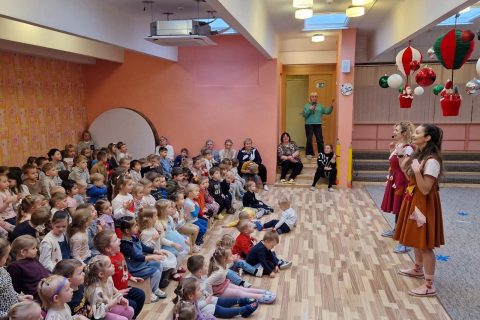 Šiandien vaikai žiūrėjo linksmą ir nuotaikingą spektaklį „Grūdelis ir Cukrelis“. Jo metu mažieji susipažino su sveikos mitybos pagrindais, sužinojo, kuo naudingi vaisiai ir daržovės mūsų organizmui. Vaikai aktyviai įsitraukė į veiklas, noriai atsakinėjo į klausimus ir smagiai praleido laiką.