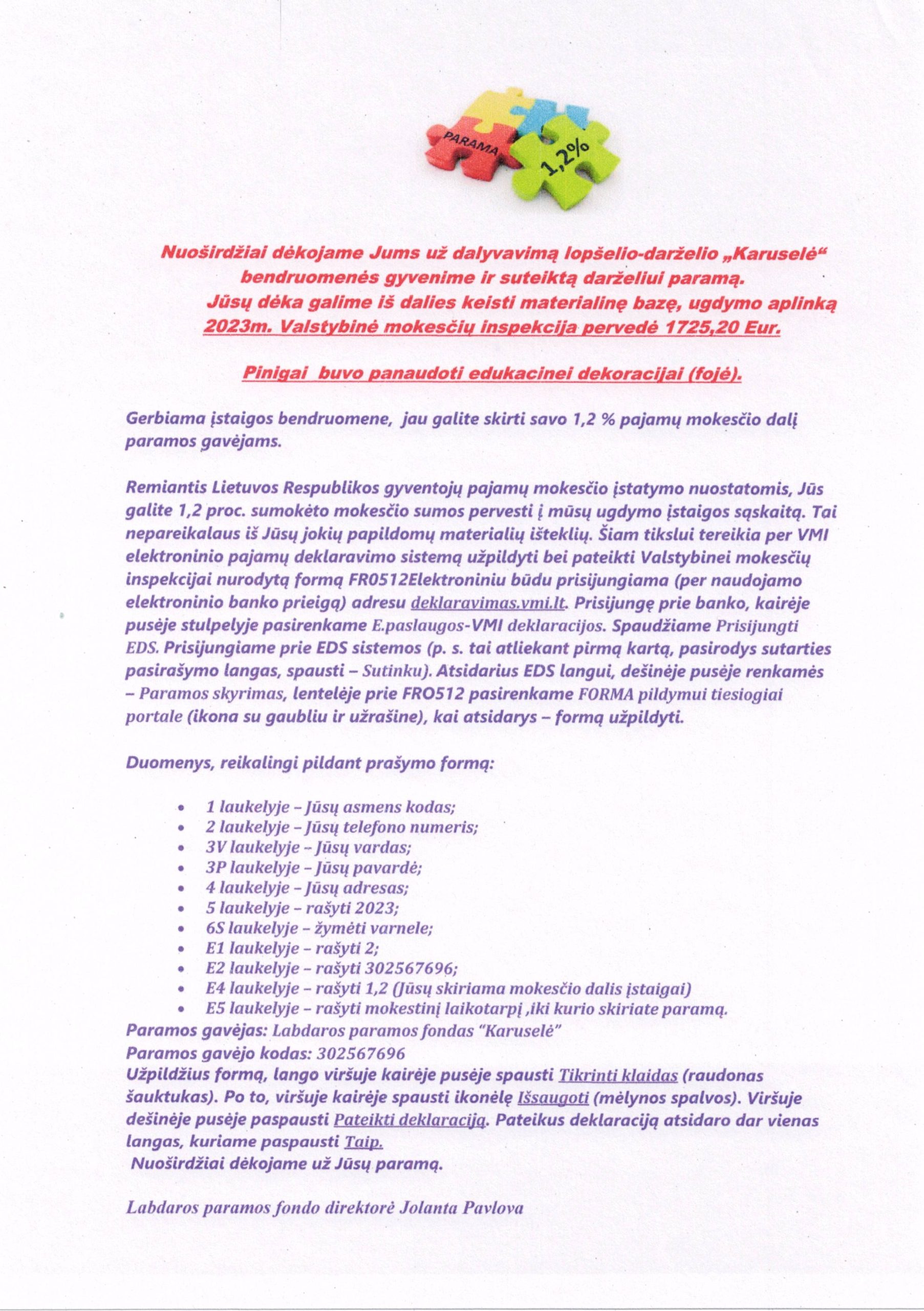 Mokesčio panaudojimo už vaiko ugdymo reikmių tenkinimą