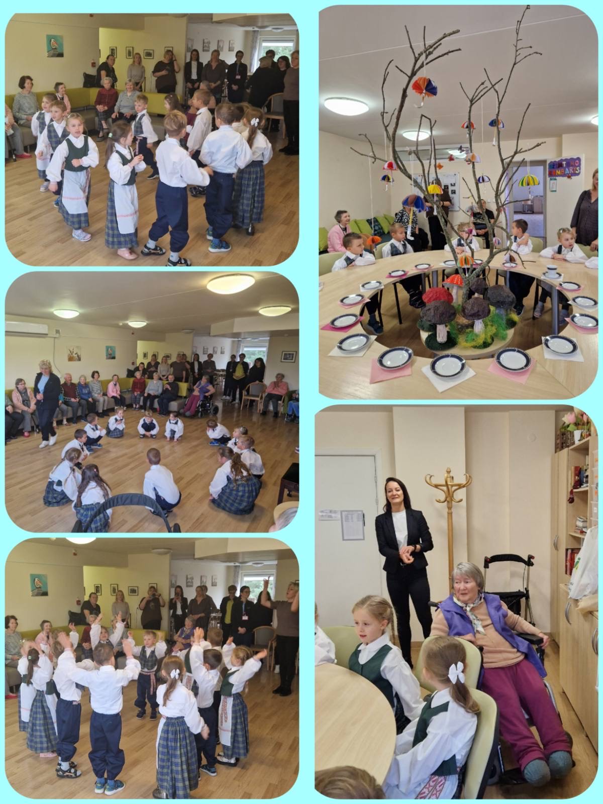 Lapkričio 4 d. Vilniaus lopšelio-darželio „Karuselė“ priešmokyklinės grupės „Bitutė“ vaikai kartu su mokytojomis apsilankė Fabijoniškių socialinių paslaugų namuose. Vaikus šiltai priėmė namų močiutės, kurios sekė pasakas, dainavo dainas, kalbėjosi su vaikais apie įvairiausius dalykus – nuo sporto iki paukščių, nuo Kalėdų nykštukui išsakytų norų iki pyragų receptų, o mūsų ugdytiniai surengė socialinių paslaugų namų gyventojams ir darbuotojams nuotaikingą koncertą su dainomis bei šokiais, o taip pat padovanojo senoliams savo sielos dalelę – nuostabų rankų darbo paveikslą.