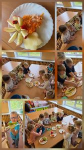 Po viktorinos vaikai buvo vaišinami obuoliais ir patys gamino vaisių vėrinukus – skanų ir sveiką užkandį!